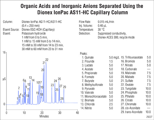 Dionex* IonPac* AS11-HC Capillary column.
