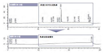 下面實例表明,將DS小柱安裝在混合器之后可以有效捕集流動相引起的雜質。